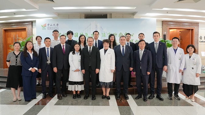 On April 24, 2025, a four-member delegation from the Turkish Ministry of Health, led by Deputy Minister Mr. Suayip Birinci, visited Sun Yat-sen University Cancer Center (SYSUCC). Prof. Sun Ying, Vice President of the center, represented the hospital in welcoming the delegation. Leaders and experts from both sides engaged in a productive exchange on topics such as clinical medical big data and artificial intelligence (AI) applications.