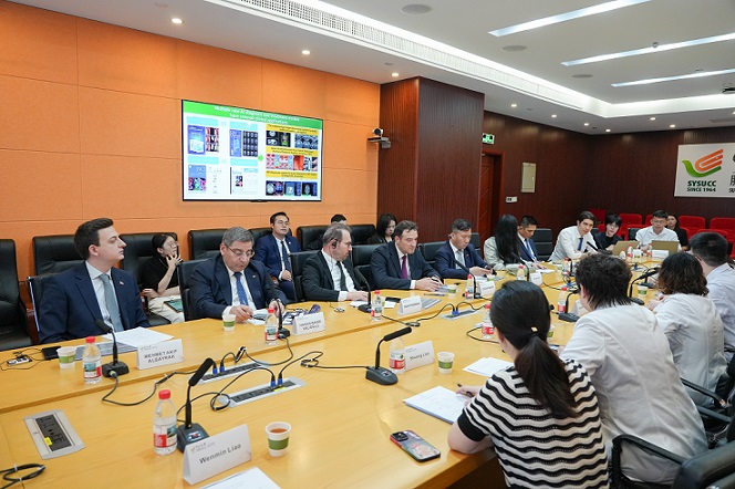 The Turkish delegation included Deputy Minister Mr. Suayip Birinci; Mr. Ozgur Sezer, General Manager of Health Information Systems; Mr. Hasan Basri Velioglu, General Manager of Health Services; and Mr. Mehmet Akif Albayrak, Advisor. Representing SYSUCC were Prof. Sun Ying, Vice President; Prof. Zhou Guanqun from the Radiotherapy Department; Dr. Zhang Cheng from the Imaging Department; Engineer Liao Wenmin from the Information Center; Ms. Ou Xiaofang, Director of the Comprehensive Supervision Office; Ms. Liao Shuang, Director of the International Cooperation Office; and Ms. Zhai Huiwen. Industry representatives from China’s medical digitization and AI application sectors also attended the meeting.