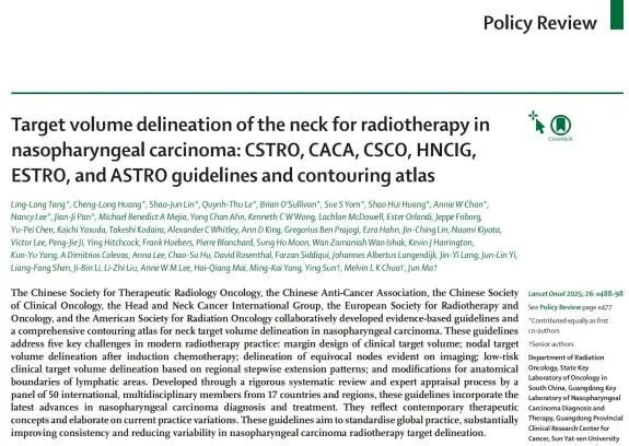 The International Guidelines and Atlas for Target Volume Delineation of Radiotherapy in Nasopharyngeal Carcinoma were officially released on September 2nd, 2025. Co-published in two parts—addressing the primary tumor and the neck—in the prestigious journal The Lancet Oncology, these Guidelines were developed under the leadership of