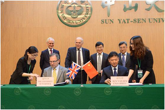 The signing ceremony was held in the East Campus of the Sun Yat-sen University with the President and Vice President of SYSUCC, respectively Xu Rui-hua and Qian Chao-nan and the Vice Chancellor of Warwick, Lawrence Young. The Business Secretary of UK, Vince Cable, the Principal of SYSU, Xu Ning-sheng, and the Vice Principal, Zhu Xi-ping witnessed the signing of the MoU. Mr. Cable reminded through his speech that education was major for the future of China and UK. UK is currently exploring further education collaboration opportunities with China for the next 20 years, in terms of academic research, university branches establishments and education plans for undergraduates and post-graduates. Students on both sides will have more chances to communicate and exchange ideas.