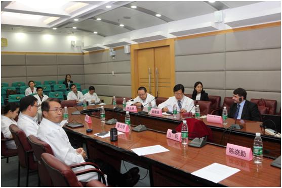 For his first visit to our cancer center and the Medical Oncology Department, Prof. Huiqiang hosted a formal conference in which Prof. Mulligan addressed the latest development of Chronic Lymphocytic Leukemia(CLL) and Mantle Cell Lymphoma(MCL) research, and Prof. Qingqing Cai’s introduced the Lymphoma Division of the Medical Oncology Department. They mainly focused on recent achievements in teaching, research and training. Meanwhile, they discussed some popular topics about CLL and MCL. Prof. Wenqi Jiang and Prof. Zhiming Li from the Medical Oncology Department, Prof. Zhongjun Xia from the Hematology Department, Prof. Su Li from GCP Center and specialists from the brother hospital in Guangzhou also participated to the conference.